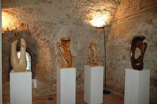 Het was in een middeleeuws kasteel omgeven door een slotgracht. De beelden stonden in de vroegere ondergrondse kerkers.